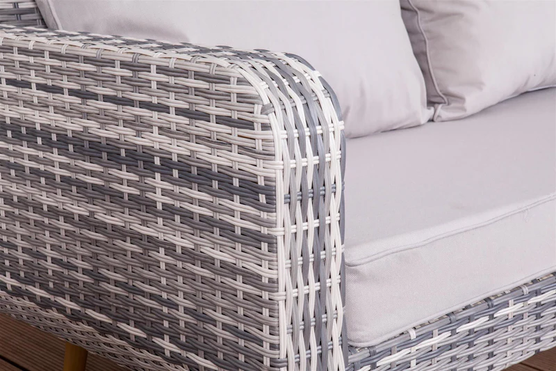Entretien Pour un entretien optimal de votre salon de jardin scandinave en résine tressée, nous vous recommandons de laver la résine au jet d’eau, ni plus ni moins !